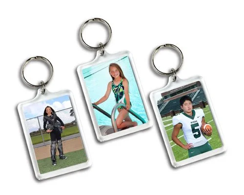 Cute and durable, 1.375" x 2" Acrylic Photo Key Chains come in a set of 2 so they're perfect for mom & dad, or give an extra away as a friend gift.